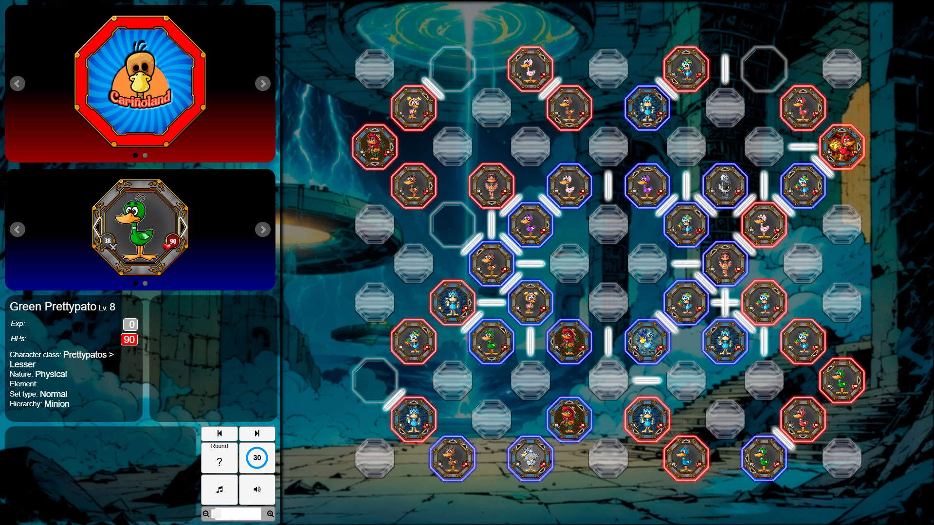 When Blob leaders started to see the Prettypatos building a mass of followers, they decided to capture one of the patos. Scientists discovered that they were wearing masks all the time. They warned everyone by spreading the true form of the patos, and blobs started to scare. El_Pato knew this and decided to come forth with avatars spawned with his true appearance: the Cariñopatos, removing the Prettypatos from the formula and starting to force citizens to love them by force as they were.