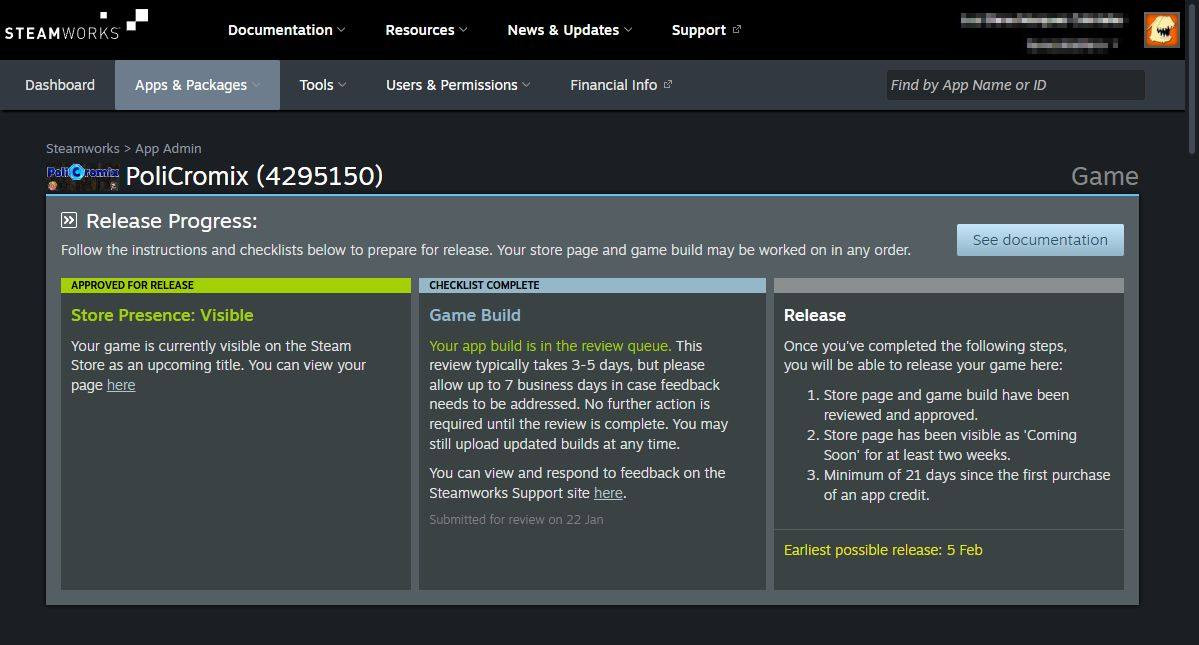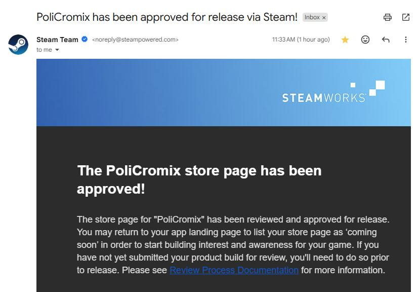 We immediately posted stuff on the PoliCromix spots at Steam, and went into the SteamWorks page to do some tuning and add missing pieces.